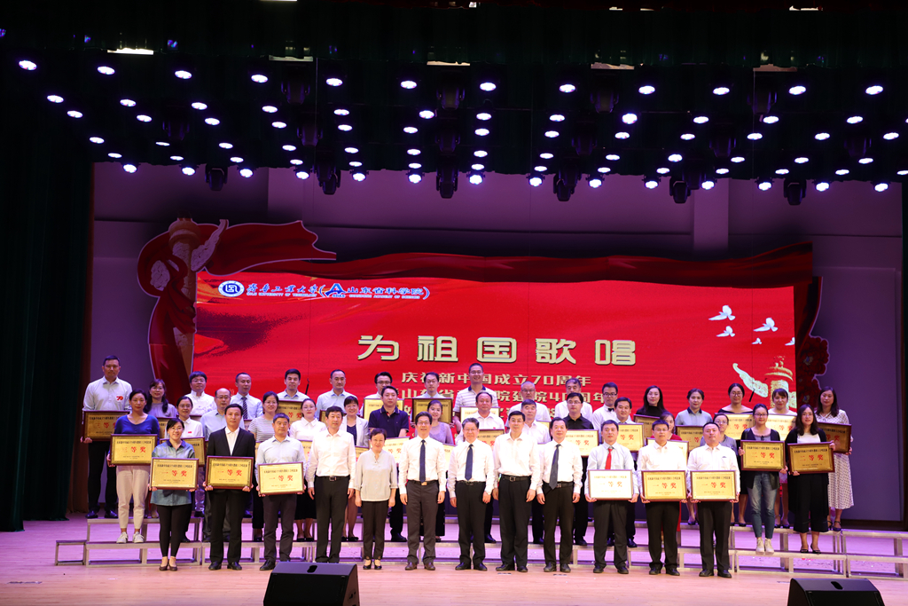 合唱比赛在学校(科学院)领导班子成员与学生代表高唱《我和我的祖国》的歌声中拉开了帷幕,来自学校(科学院)39个工会分会代表队用歌声向祖国七十华诞献礼。