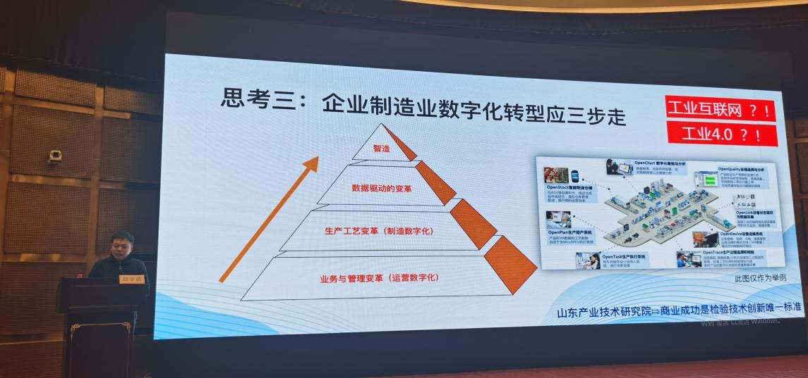 山东产业技术研究院副院长、山东(青岛)产业技术研究院执行副院长赵宇波分析了山东装备制造业现状、面临的新挑战,提出了加快数字化转型的发展建议与思考。