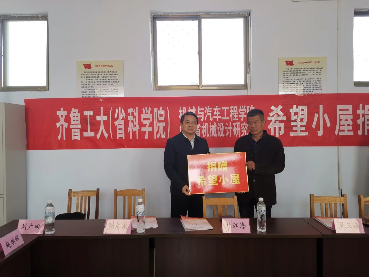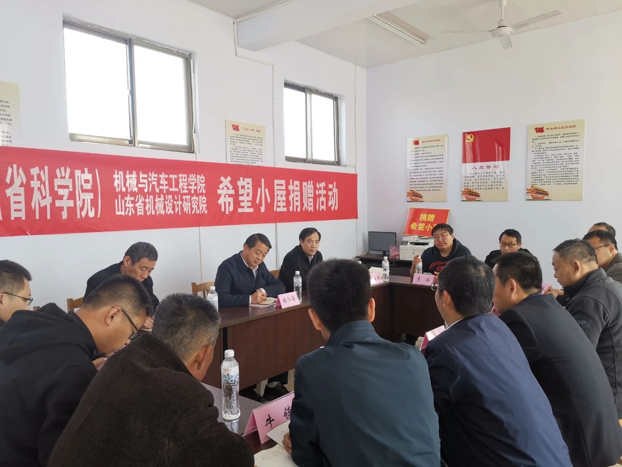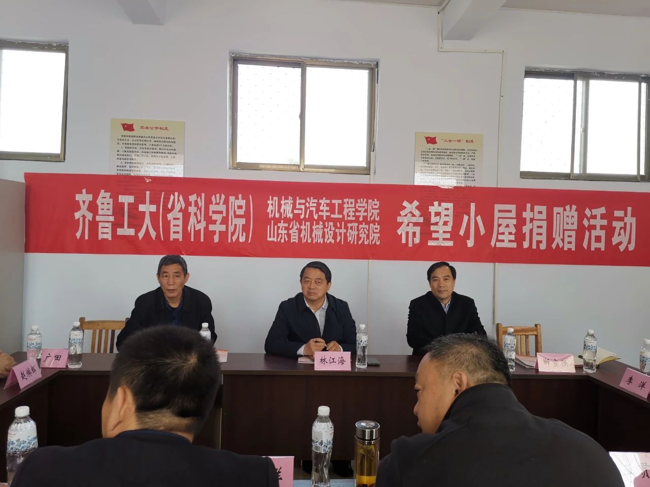 4月8日,机械与汽车工程学院省机械设计研究院党委书记林江海一行赴我院省派第一书记帮包村临邑县孟寺镇郑家村实地调研,并开展希望小屋捐赠仪式。我院纪委书记、副院长夏玉海,综合部政研会党支部书记张志水,政工人事办公室主任靳宣强参加调研。县委挂职副书记于立军,齐鲁工业大学(省科学院)派驻临邑县驻村第一书记,镇党委书记王贯峰,党委副书记、镇长刘振祥,党委委员、宣传委员、副镇长路兴亮陪同。