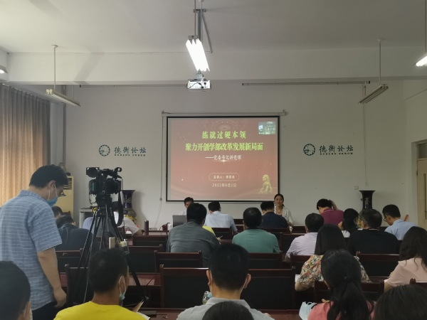 6月2日下午,学部党委书记吴笑兵给学部全体党员干部讲“练就过硬本领,聚力开创学部改革发展新局面”党课。学部党政领导班子成员,学部管理服务部门工作人员、各系(部)主任在长清校区机电楼A217会议室参加党课学习,研究院管理服务部门工作人员、业务部门负责人通过腾讯会议线上参加党课学习。会议由正处级组织员周玮玲主持。