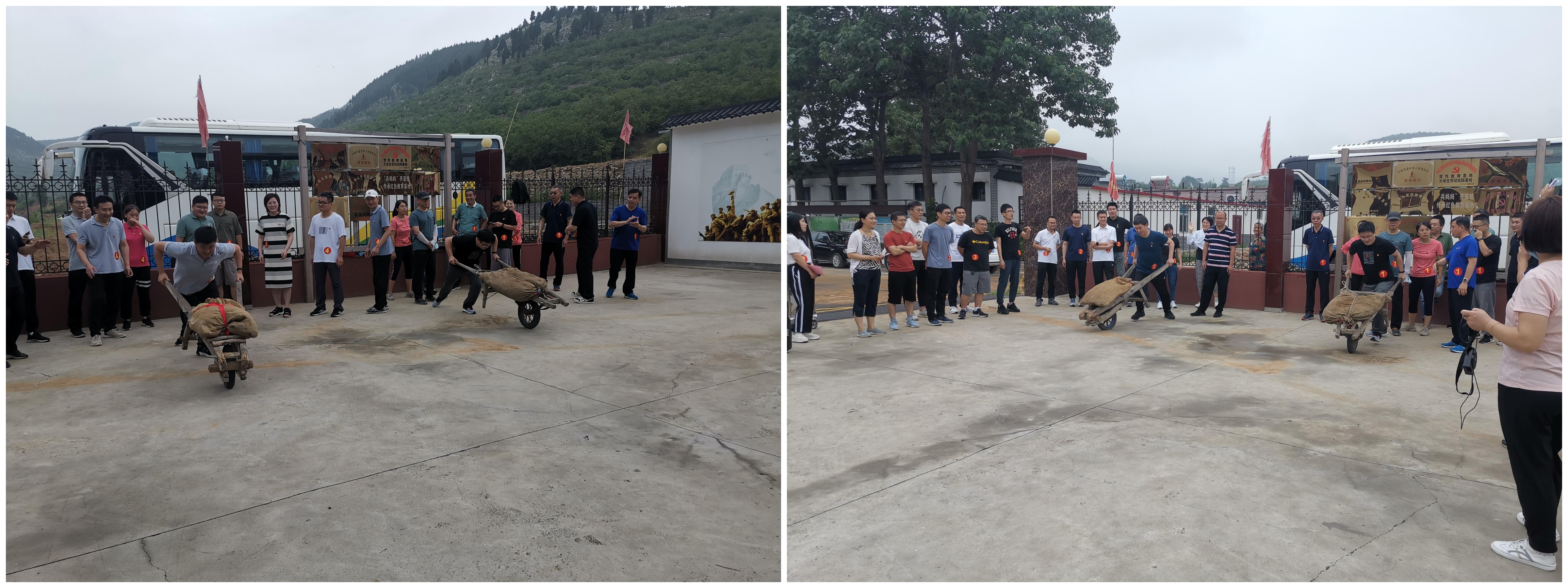 到达目的地后,全体成员身着八路军军装,高声合唱《没有共产党就没有新中国》,唱出了豪迈与自信,唱出了激情与动力。接下来的体验式教学项目——推独轮车分组对抗赛燃爆全场,大家切身感受到了南黄崖的红色气息、体验了军民鱼水情深,充分感受到了革命胜利果实的来之不易,在传承革命精神的同时,接受了党性教育,增强了党性修养,强化了责任担当。