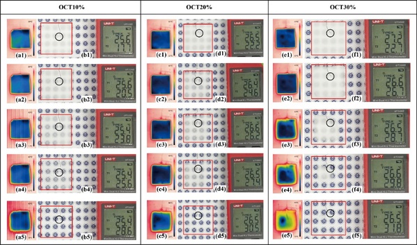 研究以石蜡为相变材料(PCM)成功制备了透射率可随温度改变的定形相变材料(TRTSF),实验工作主要由20级研究生蔡培同学和21级研究生康瑞耕同学完成。TRTSF膜在相变前后具有明显的透射开关效果,可根据环境温度自动调整可见光与红外光透射率。固态时PCM透射率下降为4.7%以下,可隔绝可见光-中红外波段的传导;液相时PCM在紫外-中红外(尤其是8-13μm)波段的光学特性与PDMS接近,可替代纯PDMS发挥辐射制冷发射层的作用。该成果有望解决辐射制冷对环境温度的自动响应问题。