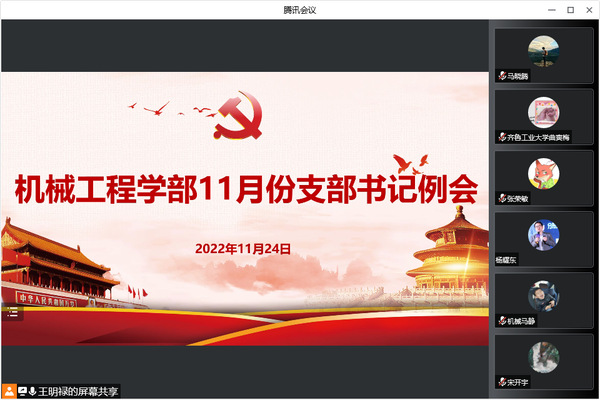 11月24日,机械工程学部党委采用腾讯会议的方式召开11月份支部书记例会,学部党委书记吴笑兵出席会议并讲话。党委副书记宋开宇、党委副书记兼纪委书记刘龙、全体党支部书记及组织宣传科相关人员参加会议。会议由学部正处级组织员周玮玲主持。