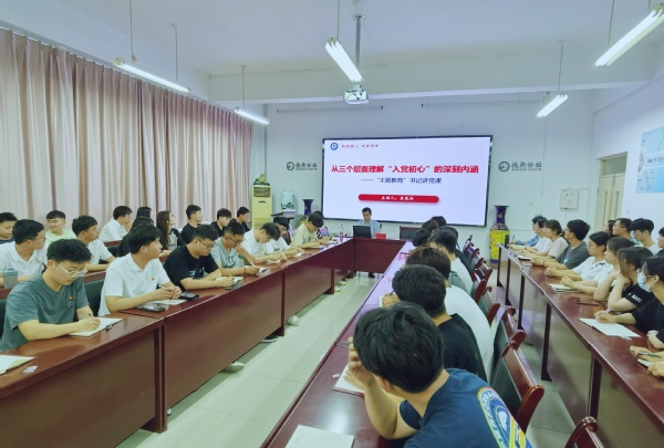 吴笑兵围绕主题教育“学思想、强党性、重实践、建新功”的总要求,作了深入浅出、富有哲理的讲解。他讲到,一个国家的进步,刻印着青年的足迹,一个民族的未来,寄望于青春的力量。广大团员青年坚定跟党走,就是初心,不忘这个初心,是我国广大青年的政治选择,也是我国广大青年的人生航向。作为新时代的学生党员,在组织上入了党,更要在思想上入党,应该从三个方面真正理解和体会:一要学思想、强党性,感悟入党初心,深刻认识中国共产党的伟大。二要学思想、重实践,守住入党初心,务必永葆中国共产党人身份。三要学思想、建新功,践行入党初心,争做一名合格的党员。