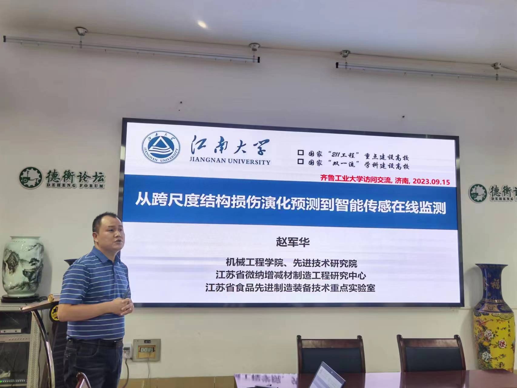 9月15日上午,江南大学机械工程学院院长赵军华教授应邀在第三教学楼A217会议室作了题为“从跨尺度结构损伤演化预测到智能传感在线监测”的学术报告。报告会由机械工程学部主任许崇海教授主持,有关教师及研究生参加了此次报告会。