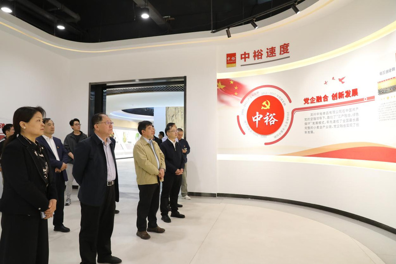 在黄河三角洲小麦馆,讲解员向大家介绍,在党企融合引领三产融合的带动下,中裕集团坚持“藏粮于技”“技术兴国”理念,致力于通过技术进步建设高标准农田,同时发展节本智能高效的现代化农业。走进展示馆,馆内展示了中裕食品如何从田间到餐桌,打造贯穿一、二、三产业的小麦加工全产业链。通过馆内影像、模型等多媒体演示,学生们详细了解了小麦产业全链条的实践探索经验,争取将来将专业知识用在助力乡村振兴“粮”好发展。