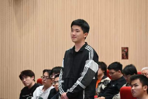 他追溯了学生时代的求学及工作历程,详述了在学术殿堂中如何锤炼专业技能、积累知识储备,为日后投身国防事业打下坚实基础。特别强调了他在三线建设时期,积极响应国家号召,毅然投身艰苦的科研一线,以实际行动践行着“献身国防、无私奉献”的军工精神,生动展现了老一辈军工人面对逆境的坚韧不拔与矢志奋斗。谈及“古稀喜迎十四五”之时,诸葛宝钧老先生虽已步入晚年,但仍壮心不已。面对台下热情发问的同学们,他欣慰地给予了细致而热切的解答,与同学们进行了跨越时代、砥砺传承的积极互动。