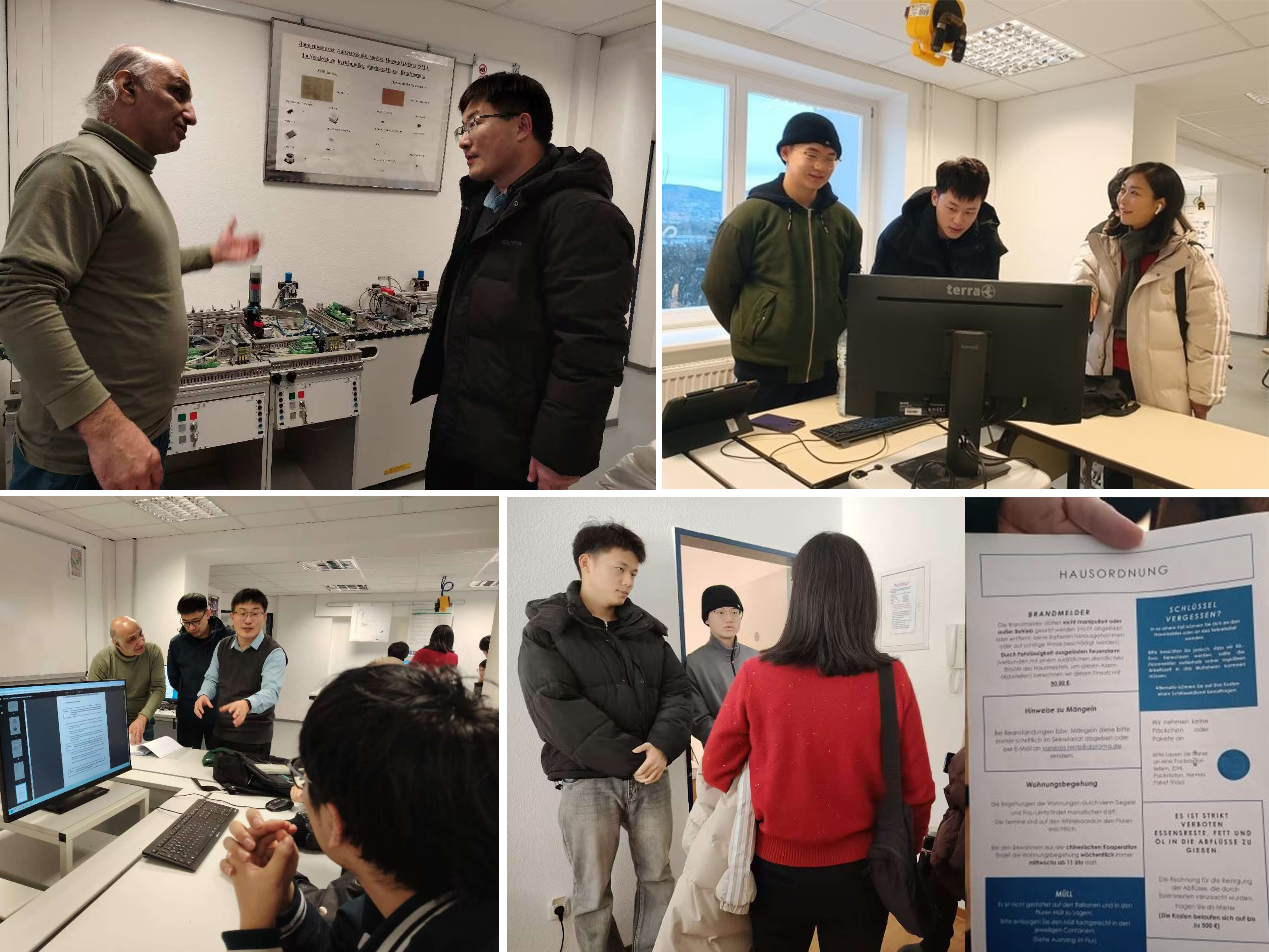 会谈后,访问团成员随堂观摩了北黑森应用科技大学机器人、PLC编程等相关实践课程教学环节和实验室建设,深入考察了该校实验室以及实践课程的教学过程,为我校开展相关实验教学活动提供了参考。