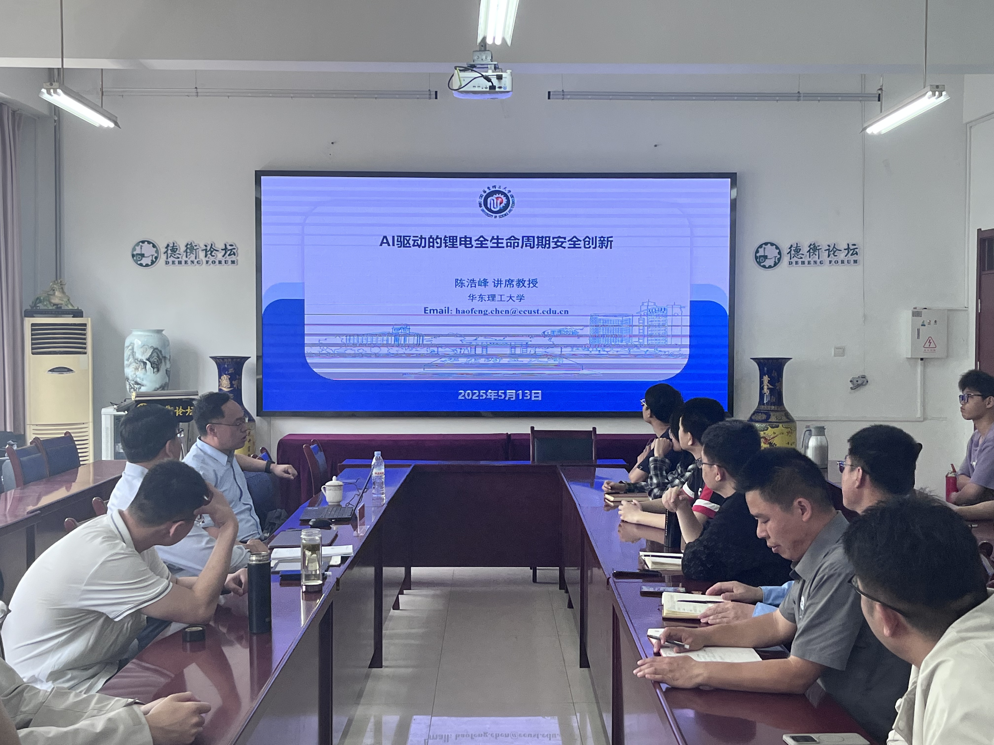 随后,陈浩峰教授做客学部“德衡论坛”,做了题为“人工智能驱动的锂电安全创新”的学术报告。报告介绍了其团队采用深度学习算法整合电池全生命周期数据,构建多维度电池状态评估模型,显著提升了电池健康状态及剩余寿命的预测精度;提出的先进检测算法有效捕捉了电池潜在安全风险的早期信号。该报告提供了AI赋能电池安全的新思路,为新能源汽车安全性能提升提供了新路径,将助力智能化储能技术的创新发展。