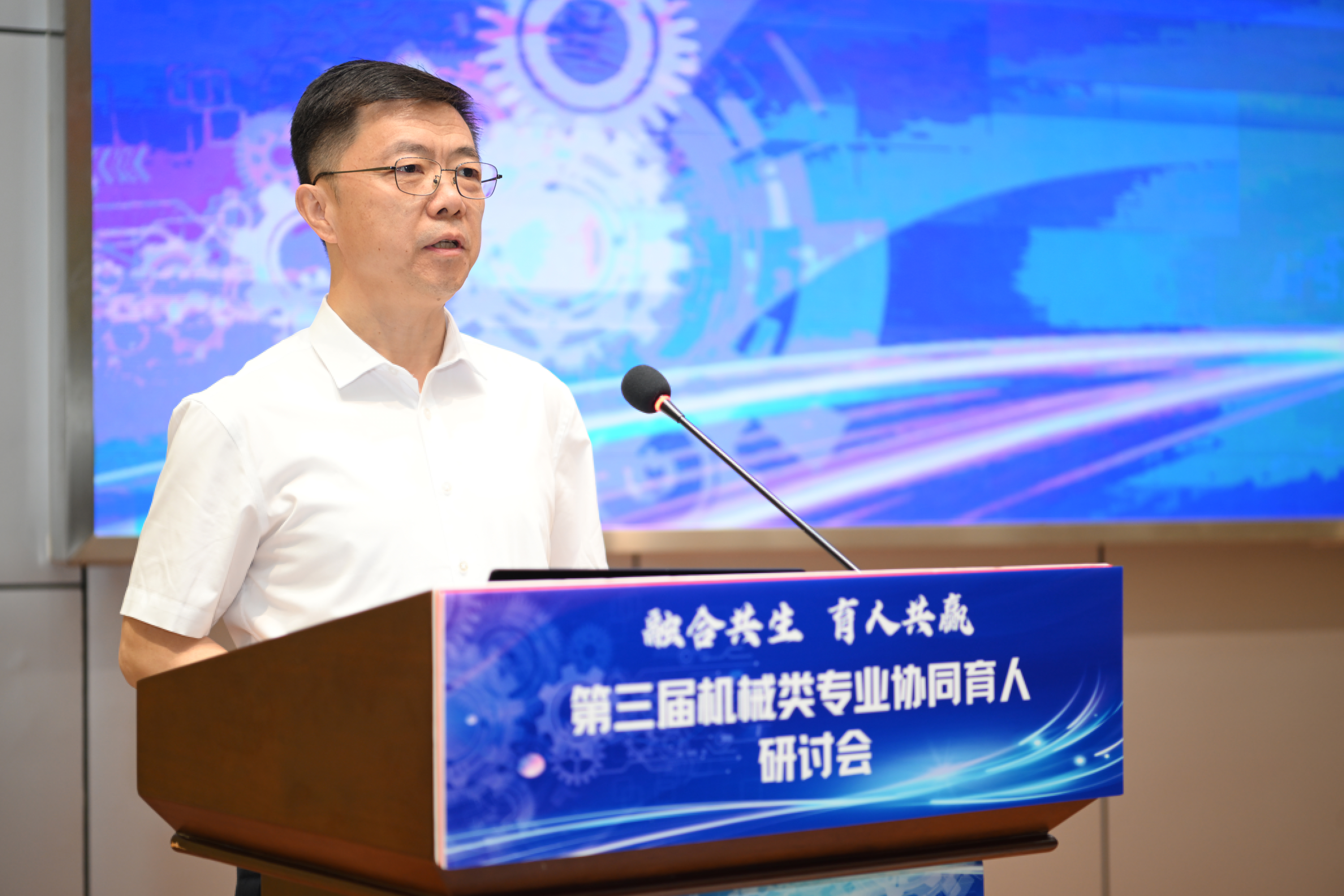 王楗夫首先代表省工业和信息化厅向大会的举办表示祝贺。他指出,第三届机械类专业协同育人研讨会紧扣“融合共生、育人共赢”主题,邀请专家学者与企业家共商协同育人大计,有利于进一步深化校企合作,对于推动我省装备制造业产业链、教育链、创新链、人才链融合发展,充分彰显一流工业大学的使命担当,推进新型工业化强省建设具有重要意义。他提出,希望参会各方始终坚持以高质量发展需求为导向、始终坚持以校企合作为基础、始终坚持以人才成长为目标,同时结合企业转型升级实际,推行“订单式”“终身制”教育模式,形成“培养-就业-培训-转型”的全周期协同育人格局。
