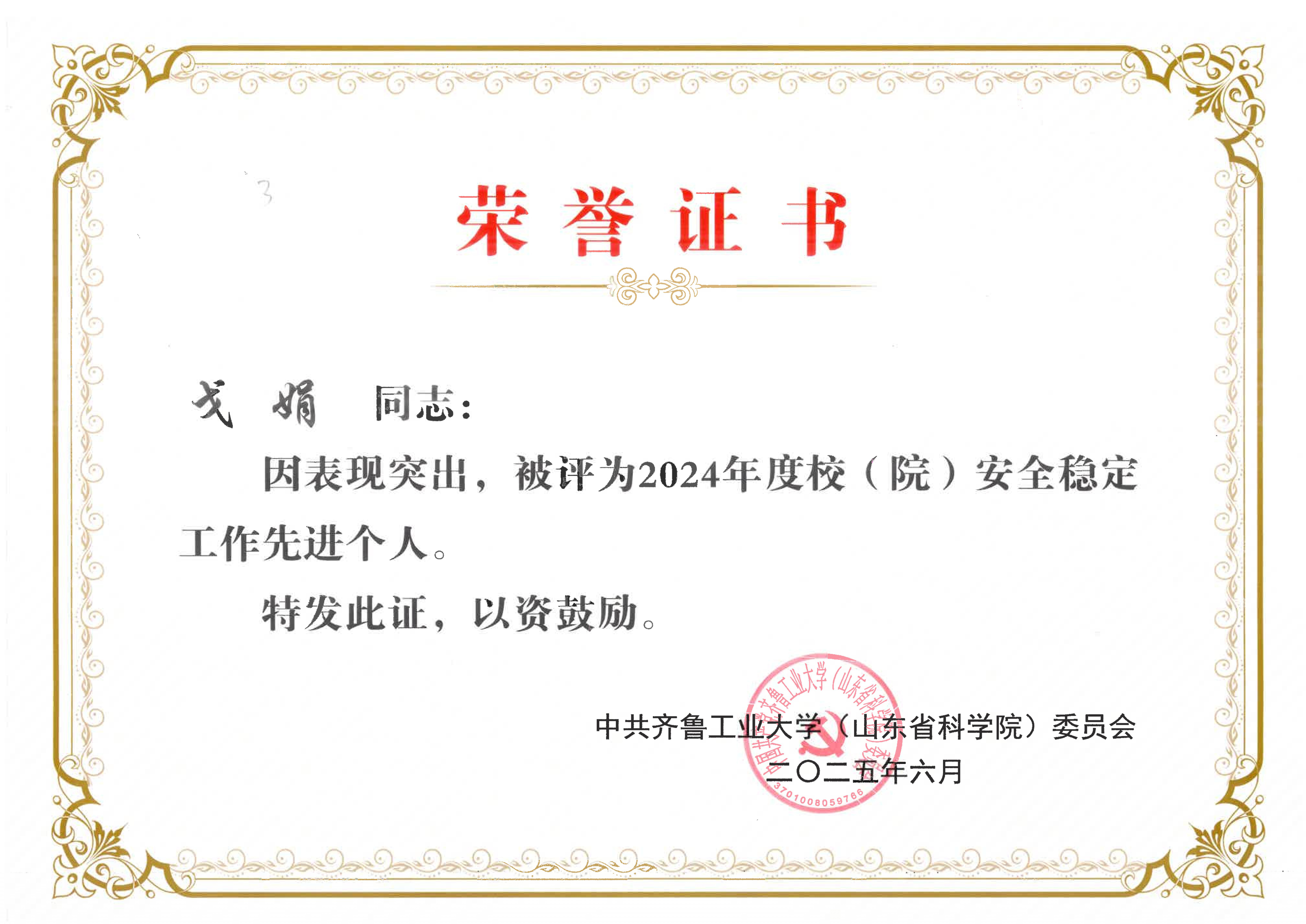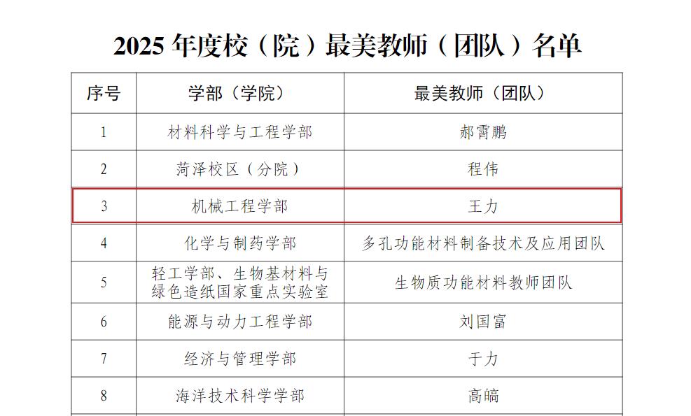 近日,校(院)公布2025年度“师德建设先进集体”“最美教师”评选结果,学部获师德建设先进集体荣誉称号,王力获最美教师荣誉称号。在校(院)2024年度安全稳定工作评选结果中,学部获2024年度校(院)安全稳定工作先进集体荣誉称号,戈娟、李强被评为2024年度校(院)安全稳定工作先进个人。