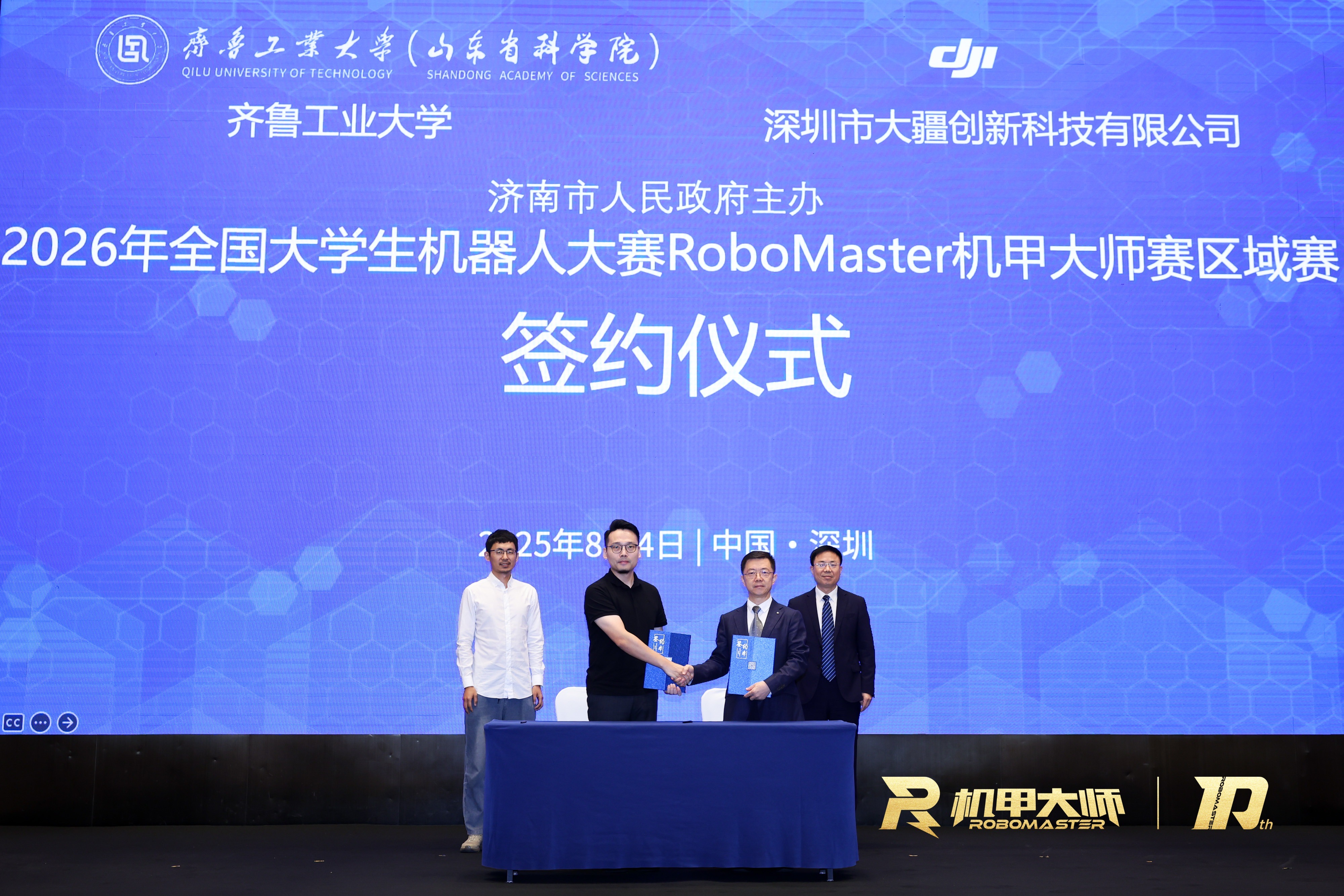 会上,举行了全国大学生机器人大赛RoboMaster机甲大师赛合作签约仪式,许崇海代表校(院)与深圳市大疆创新科技有限公司签署赛事合作框架协议,济南市体育局党组书记、局长董怀敏见证签约。按照协议,今后两年RoboMaster机甲大师超级对抗赛北部赛区、高校联盟赛均落户在济南市,由校(院)、济南市和深圳市大疆创新科技有限公司共同主办。