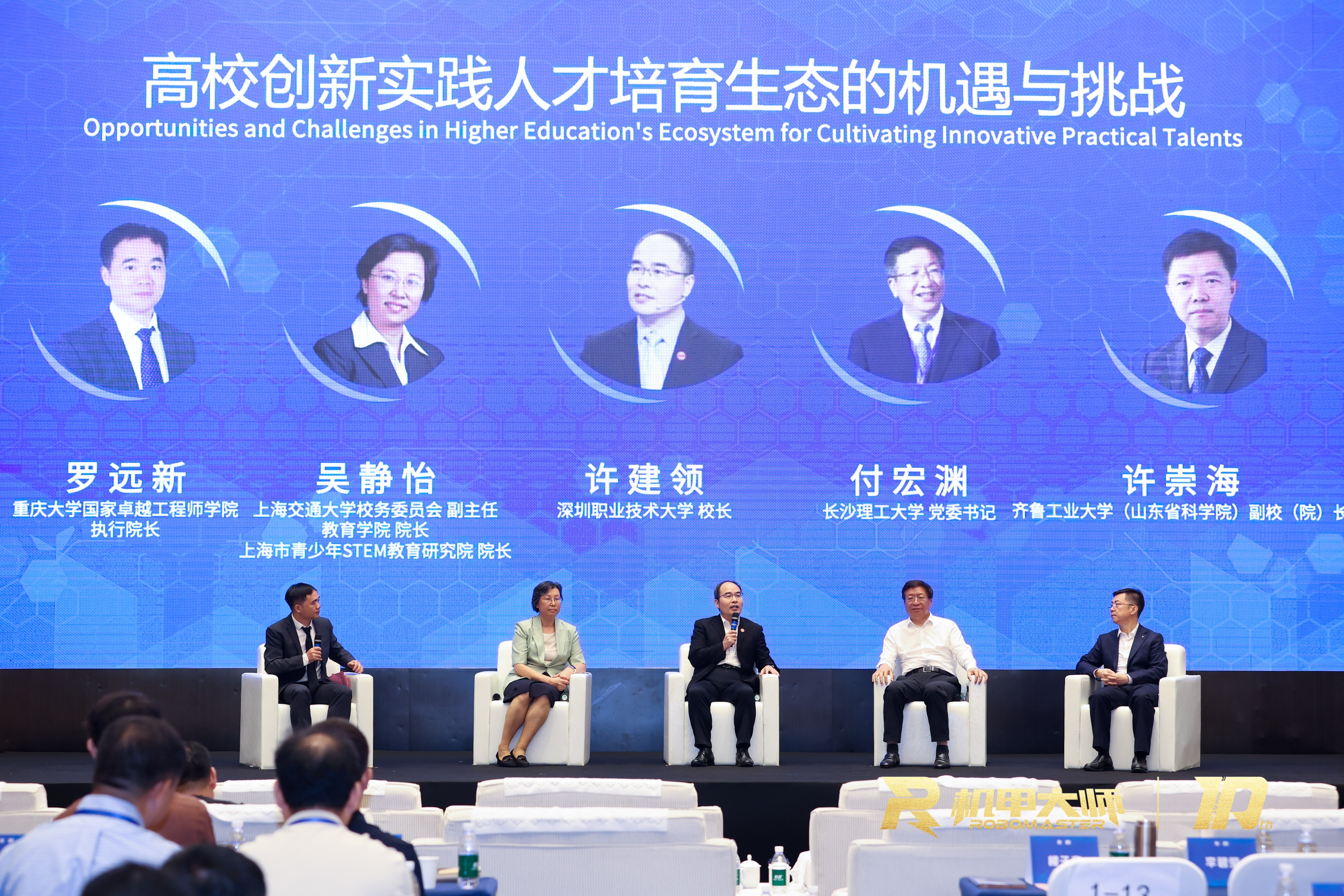 随后,许崇海作为特邀嘉宾参加了以“高校创新实践人才培育生态的机遇与挑战”为主题的专家圆桌对话环节,与重庆大学、上海交通大学、深圳职业技术大学、长沙理工大学等高校领导共同围绕产教融合深度、跨学科协同机制等关键问题展开互动交流。